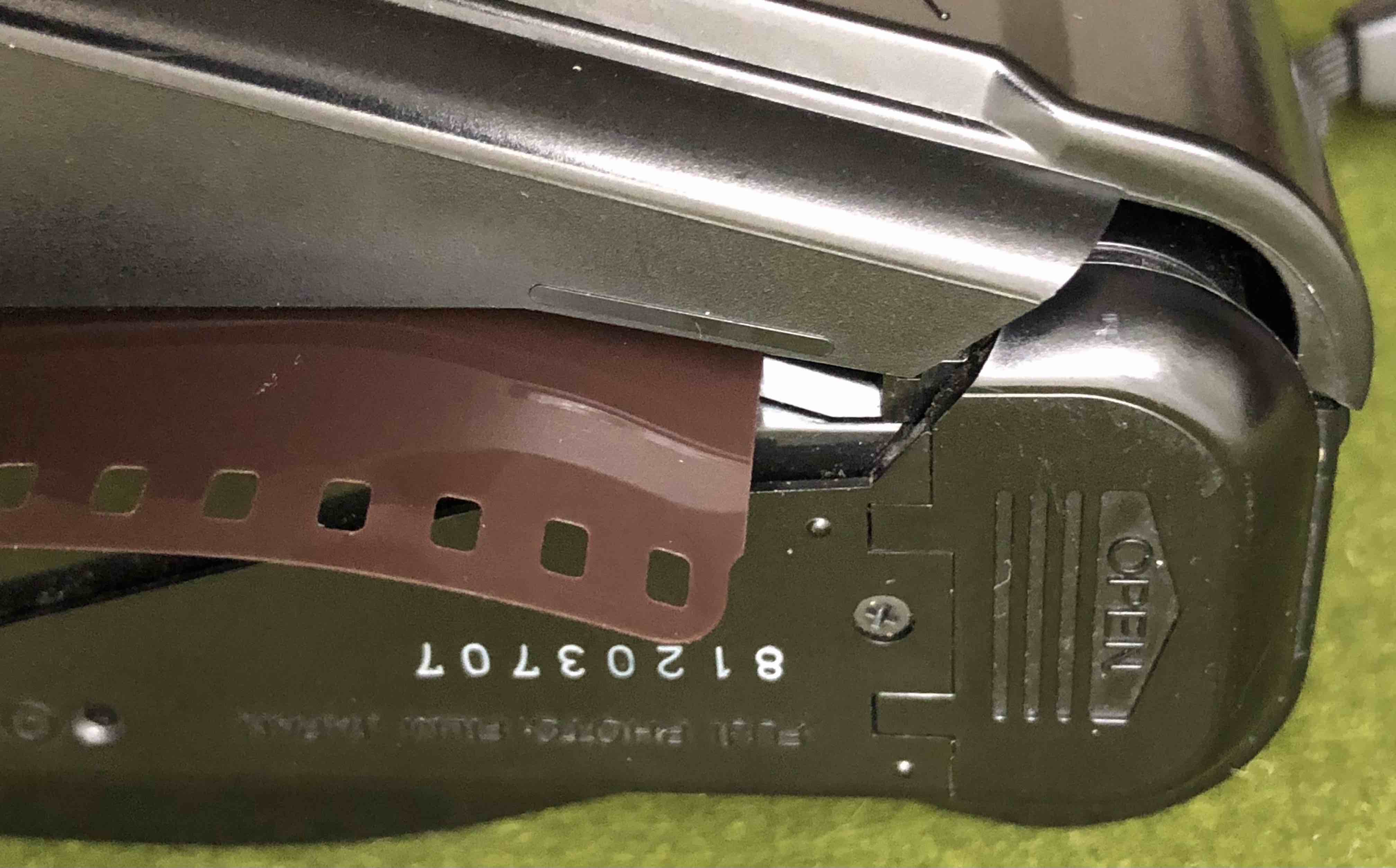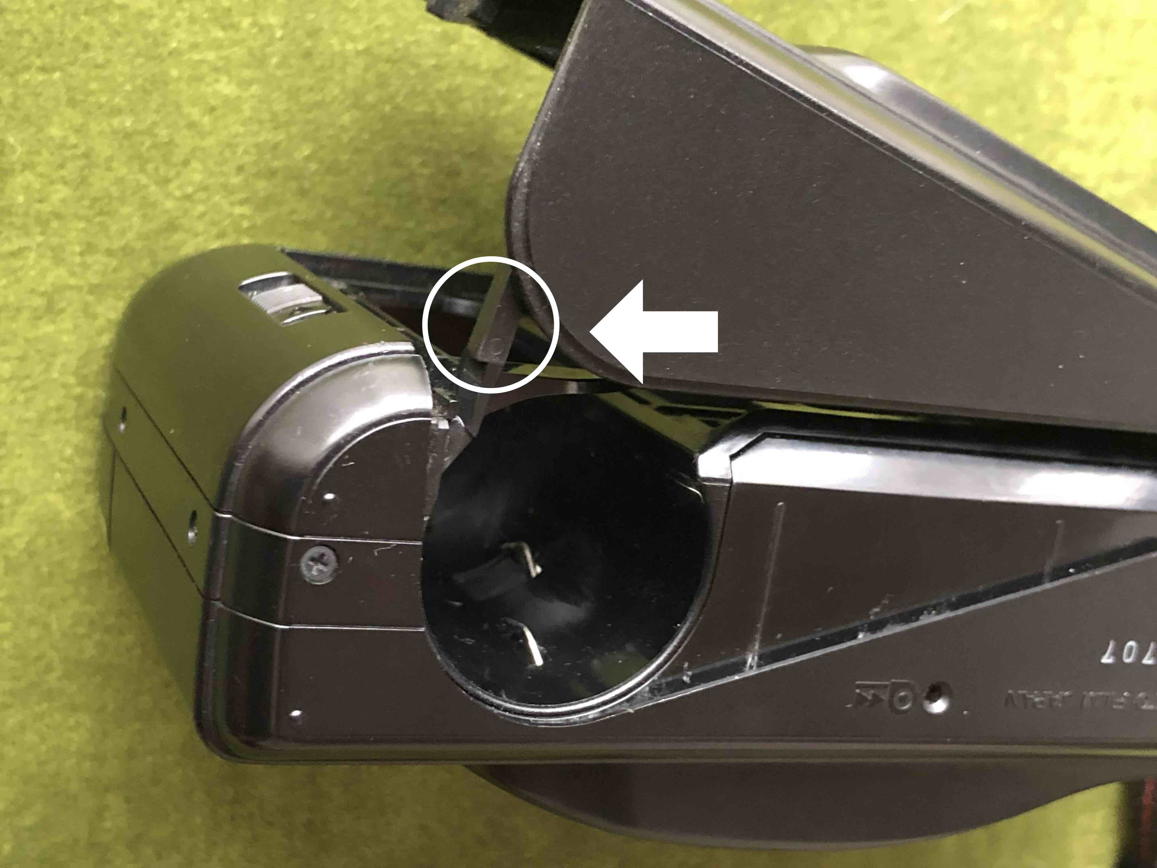 ❶裏蓋開閉スイッチを上に持ち上げます(全部開かないのは仕様です)。