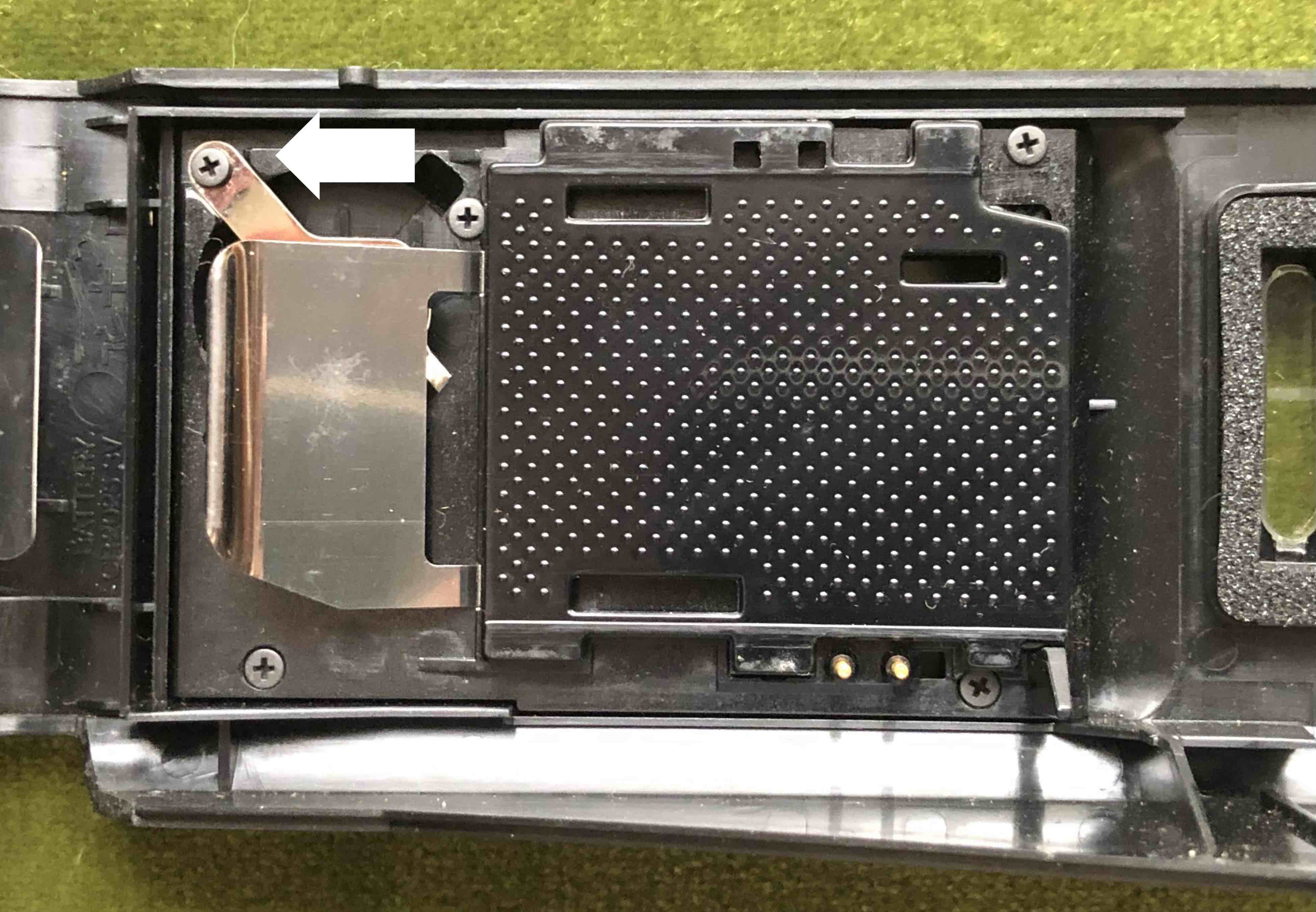 ❹矢印のネジを外し、CR2025を裏返しにセットします。