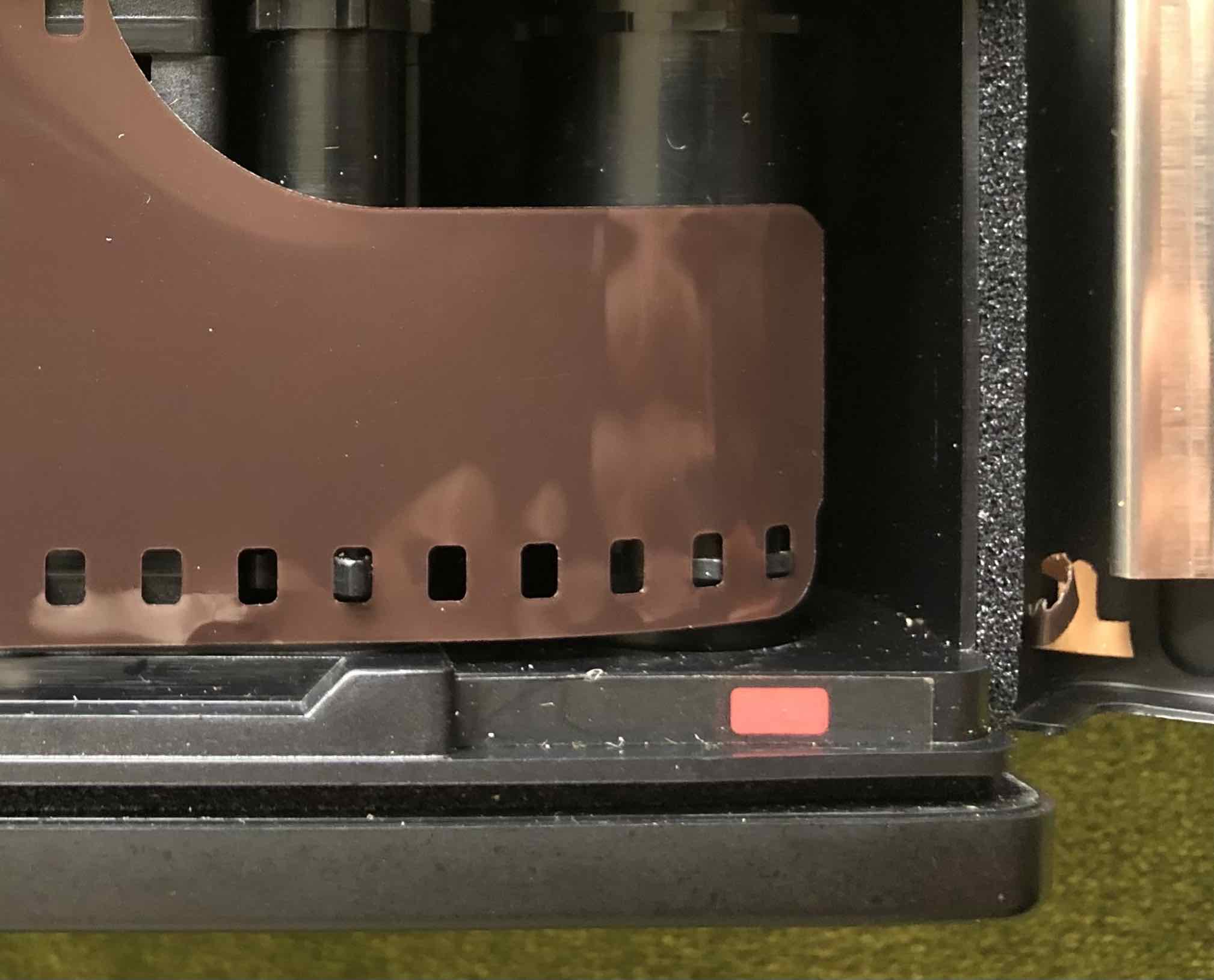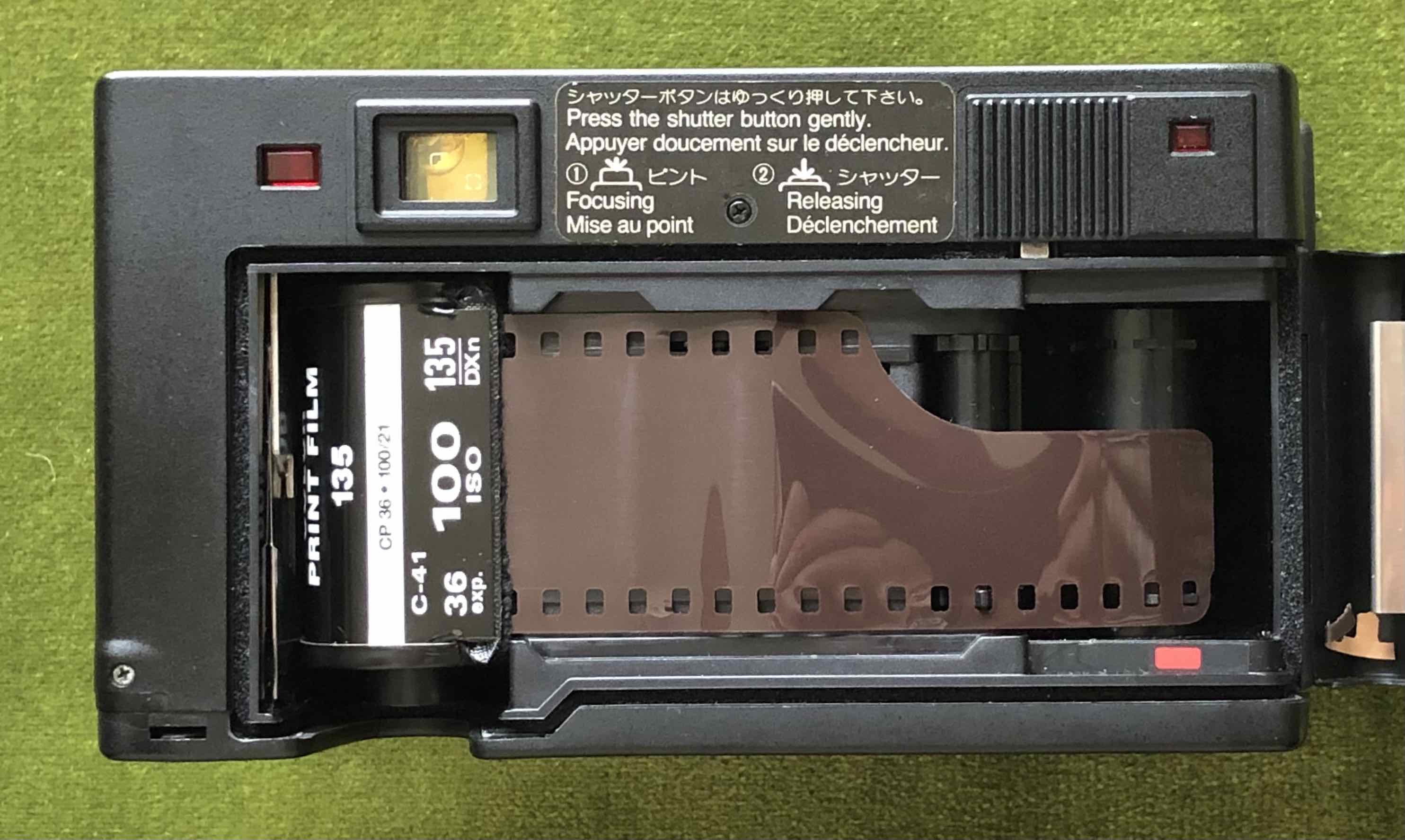 フィルム送り確認ランプが消えたら裏蓋を開けてフィルムを取り出してください。